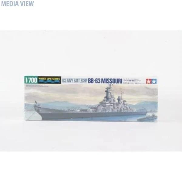 タミヤ 1/700 ウォーターラインシリーズ No.613 アメリカ海軍 戦艦 ミズーリ プラモデル 31613 アメリカ海軍戦艦ミズーリのプラスチックモデル組立てキットです。1/700スケール、全長386.5mm 、全幅47mm。1944年に就役し、朝鮮戦争や湾岸戦争にも出動したミズーリを太平洋戦争時の姿でモデル化。細長い船体やシェアの反り上がった艦首、艦橋と一体化された前部煙突など特徴を捉えて再現。質感あふれる船体は左右分割式。艦橋構造物やマスト類の精密な表現も見どころです。主砲塔の取り付けにはポリキャップを使用し、組立後も回転可能。40mm連装機銃や20mm単装機銃などの対空兵装パーツも繊細な仕上がり。艦載機はヴォートOS2UキングフィシャーとカーチスSC-1シーホークの2種類をセット。