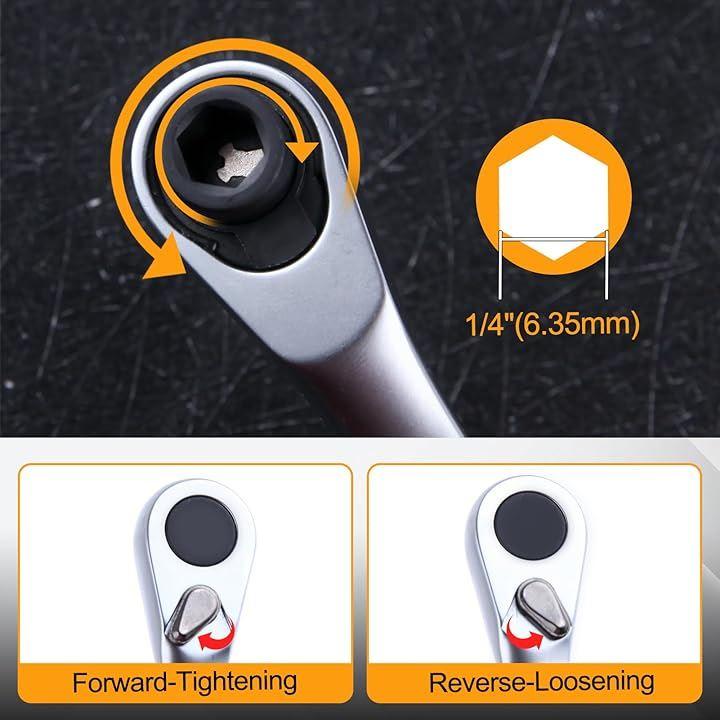 アプリケーション:ミニラチェットレンチの長さは3.7インチ(9.4cm)で、ビルジ、ディーゼル、配管システム、および小さなドライバーやソケットレンチでさえも収まらないか、効果的なスイングスペースがない他の多くの狭い場所にアクセスするのに十分なほど小さいです。