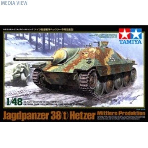 タミヤ 1/48 ミリタリーミニチュアシリーズ No.11 ドイツ陸軍 駆逐戦車 ヘッツァー 中期生産型 プラモデル 32511 ヘッツァー中期生産型の1/48スケール、プラスチックモデル組み立てキット。全長131mm、傾斜装甲で構成された精悍な姿をリアルにモデル化。軽量タイプの防盾や初期仕様のキャタピラなど中期生産型の特徴も見所。ダイキャスト製シャーシが完成時の重量感を演出。連結組み立て式のキャタピラは上下の部分を一体として組み立てやすさにも配慮。デカール3種類付き。