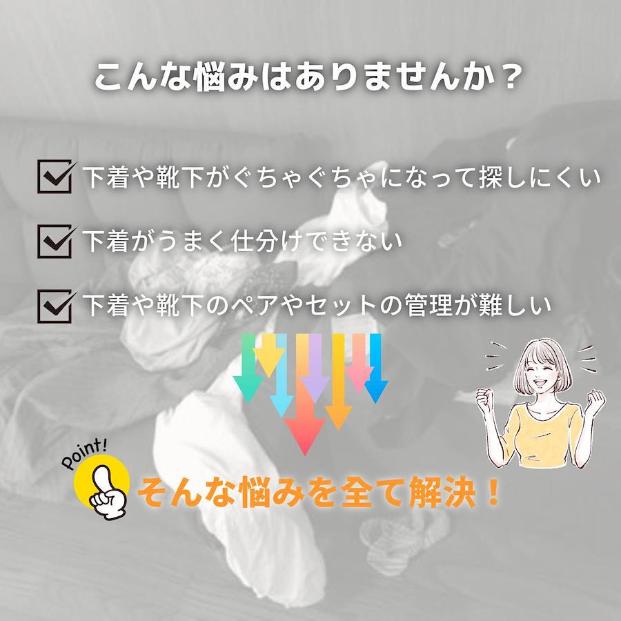 | 【見た目もキレイにスッキリ収納】 | 多彩なポケット数タイプで下着や靴下を色やタイプごとにキレイに分けられます。 |
