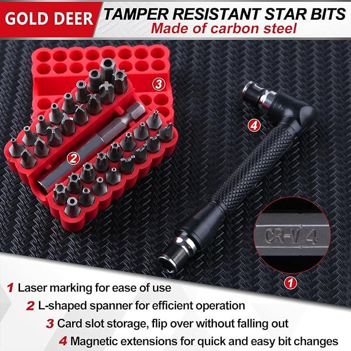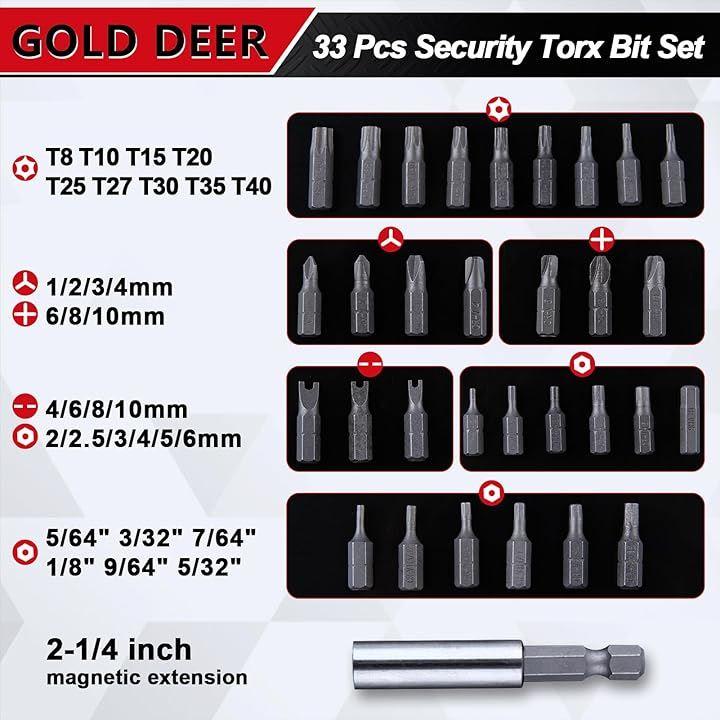 「セット内容」プラムヘッド9個: T8 T10 T15 T20 T25 T27 T30 T35 T40; 片開き4個:4/6/8/10mm; 3本爪4個: 1/2/3/4mm;4本爪3ピース: 6/8/10mm;六角メートル6個:2/2.5/3/4/5/6mm;六角インペリアル6個: 5/64' 3/32' 7/64' 1/8' 9 /64' 5/32'; エクステンション1本。