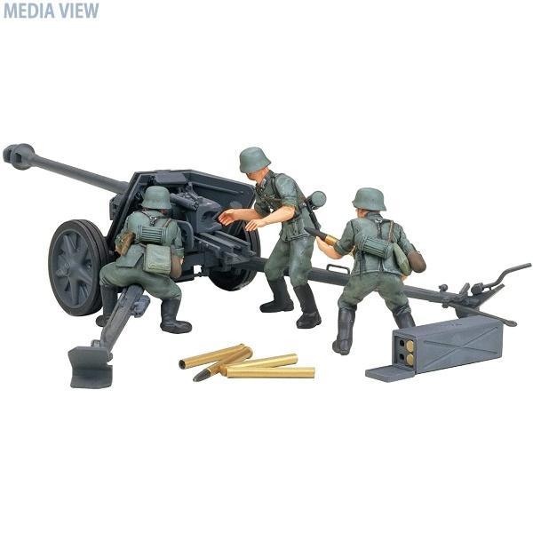 第二次大戦中ドイツ軍の主力対戦車砲として活躍した75mm対戦車砲PAK40/L46のプラスチックモデル組み立てキットです。迫力ある長い砲身や頑丈な装填部、照準器、操作ハンドルなど精密に再現。砲身の上下動や左右旋回、スライド、閉鎖機のスライドや脚の開閉など多くの可動部分が楽しめます。75mm砲弾や薬きょう、砲弾ケースなどのアクセサリーに加えて、射撃中のポーズの人形3体もセットしました。組立説明図ではドイツ軍歩兵対戦車砲中隊の編成などが詳しく解説されています。