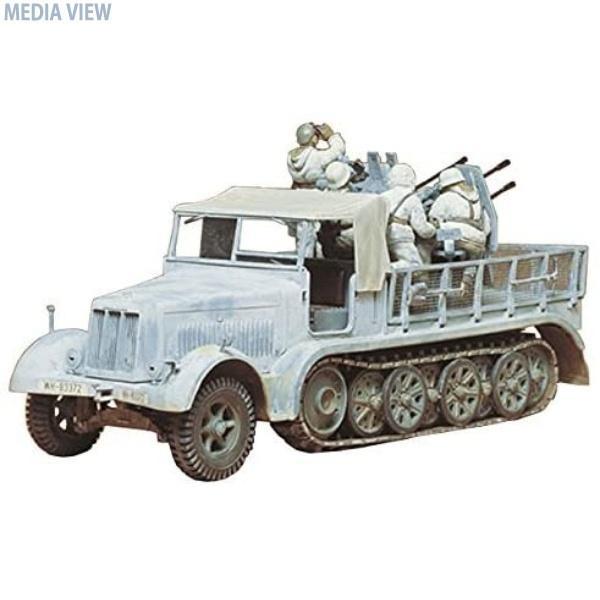 タミヤ 1/35 ミリタリーミニチュアシリーズ No.50 ドイツ陸軍 8トンハーフトラック 4連高射砲搭載 プラモデル 35050 第二次大戦後期、対空防御の必要性が増すと共に、ドイツ軍は各種の対空兵器を搭載した自走砲を開発しました。8トンハーフトラック4連高射砲もそのひとつで、4連装された38型20mm高射砲の威力は、連合軍機に脅威を与えました。キットは1/35スケールで精密にモデル化。高射砲は360度旋回可能、砲身と照準器は連動して上下動させることが可能です。またサスペンションや複合転輪など複雑な足回りもリアルに再現。工具箱、薬きょうケースなどアクセサリー類もセットされています。冬季装備のドイツ兵人形5体つき。