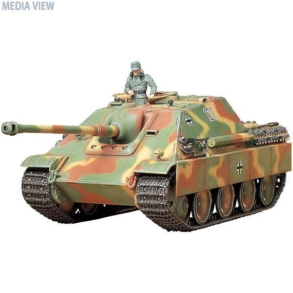 第二次大戦中の最良戦車と呼ばれるパンサー戦車の車体に固定式戦闘室と強力な88mm砲を搭載した駆逐戦車ヤークトパンサー。その中でも後期生産型を再現したプラスチックモデル組み立てキットです。モデルは1944年5月から12月にかけて生産されたタイプと12月以降に生産されたタイプを選んで組立可能。戦闘室内部も88mm砲装填部や隔壁、コマンダー用シート、など高い実感で再現。可動式のエスケープハッチや開閉選択式の各ハッチがモデルの仕上がりに変化を加えます。排気管は鋳造タイプに加え、消炎タイプもセット。コマンダーに人形1体付き。全長=278 mm。