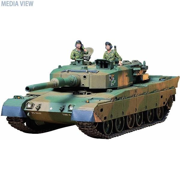 タミヤ 1/35 ミリタリーミニチュアシリーズ 陸上自衛隊 90式戦車 プラモデル世界の主力戦車に並ぶ強力な120mm滑腔砲を装備、最先端のハイテク技術を投入して開発され、1990年の正式採用以来、部隊配備が進められている陸上自衛隊90式戦車のプラスチックモデル組み立てキットです。潜水渡河用のカニングタワーや排気ダクトなどのアクセサリーパーツに加え、車長と砲手の人形各1体もセットしました。 全長:約278mm ※組み立て・塗装の必要なプラモデルです。完成品ではございませんのでご注意ください。