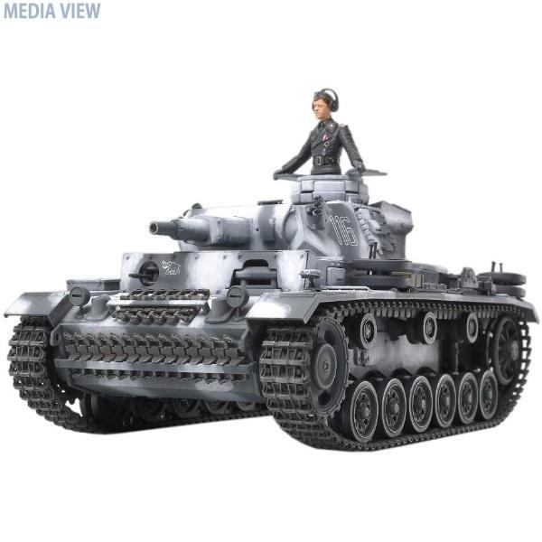 タミヤ 1/35 ミリタリーミニチュアシリーズ No.290 ドイツ陸軍 III号戦車 N型 プラモデル 35290 III号戦車N型の1/35スケール、プラスチックモデル組立てキットです。全長154mm。短砲身7.5cm戦車砲を備え、力強さを増した姿をリアルに再現。精度の高いアルミ製砲身とエッチング製のエンジングリルが細部を引き締めます。砲身基部は2種類のパーツを用意。砲塔内の主砲装填部も一部再現。砲塔左右のスモークディスチャージャーもパーツ化。2種類のコマンダーの人形、ロシア戦線や北アフリカ戦線などマーキング4種類付き。