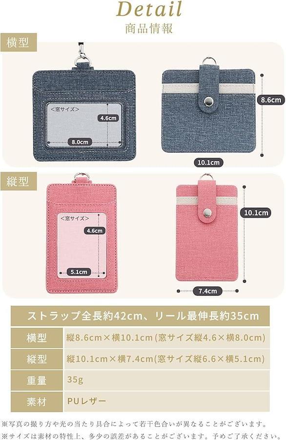 「カラー」ブルー、ブラック、オレンジ、ライトブルー、ブラウン、ベージュ、セラドンブルー、ピンク、デニム 「素材」PUレザー 「サイズ」横型:縦8.6cmx横10.1cm 縦型:縦10.1x横7.4cm 「重量」35g