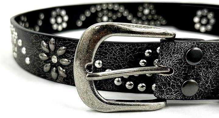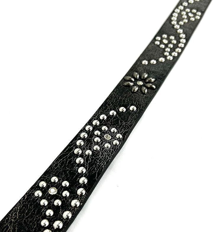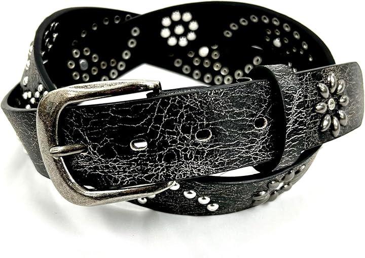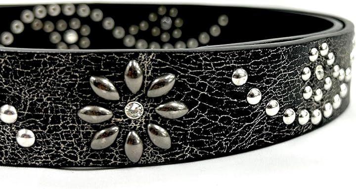 HANG OVER(ハングオーバー) スタッズ レザーベルトは、 ヴィンテージ感あふれるクラック加工レザーに、星型とフラワーのカシメスタッズをあしらった存在感抜群のデザインベルトです。