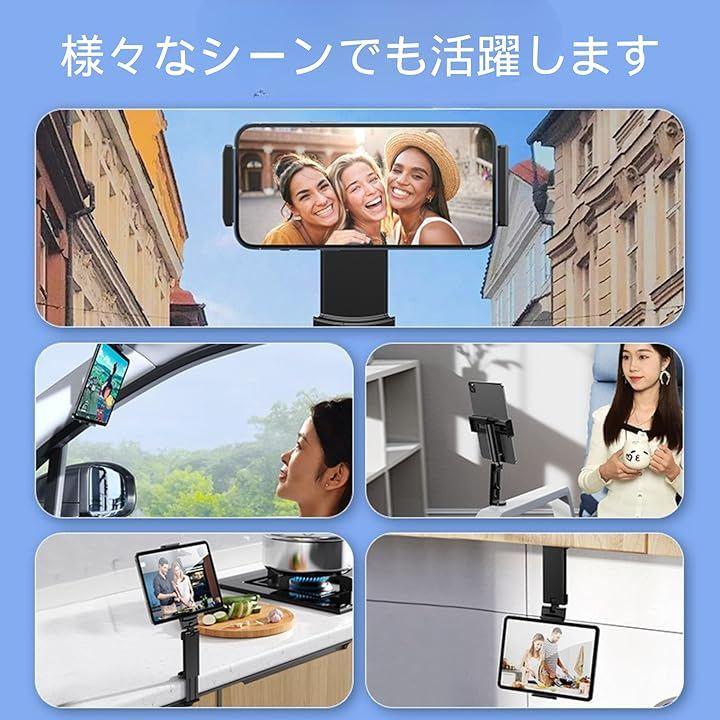 「360度回転で自由な視点」このスマホホルダーは360度回転機能を備えており、どんな角度でもスマホを固定できます。