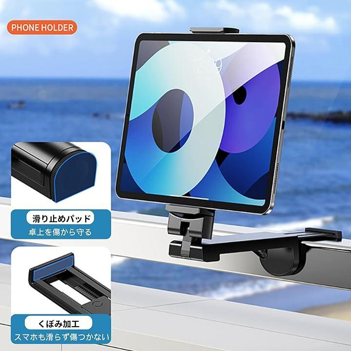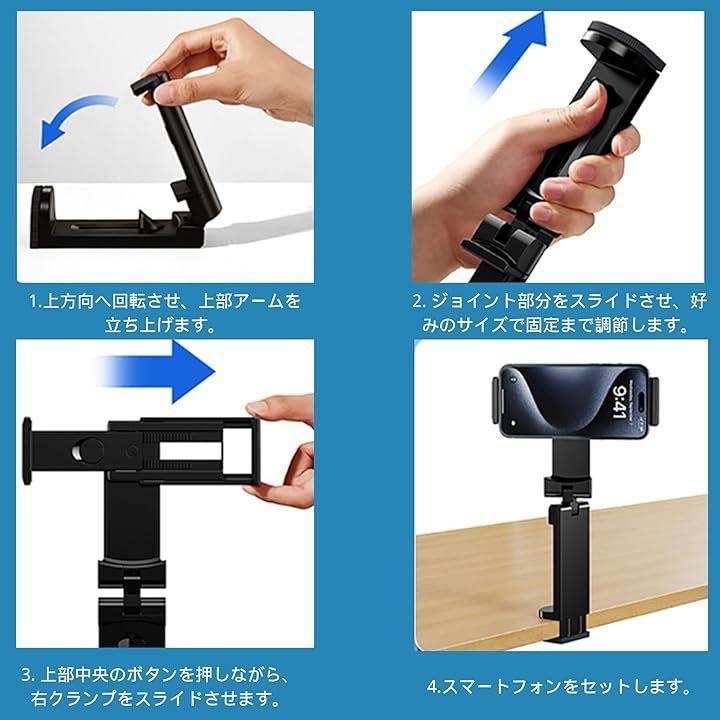 「安心の安定性」滑り止めと傷防止用のゴムパッドが付いたクランプで、スマホやテーブルをしっかり保護。