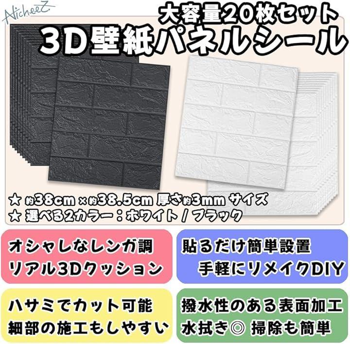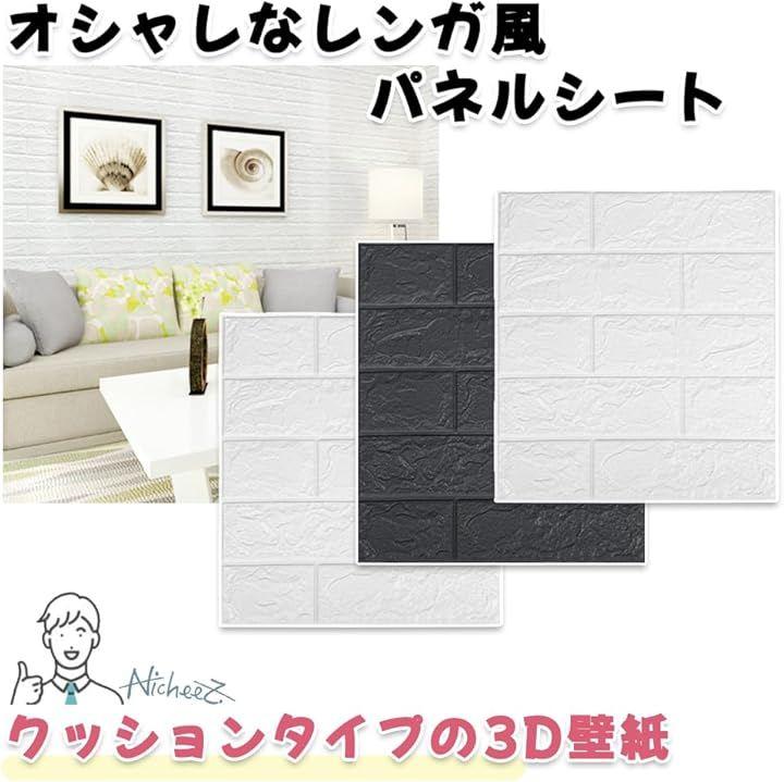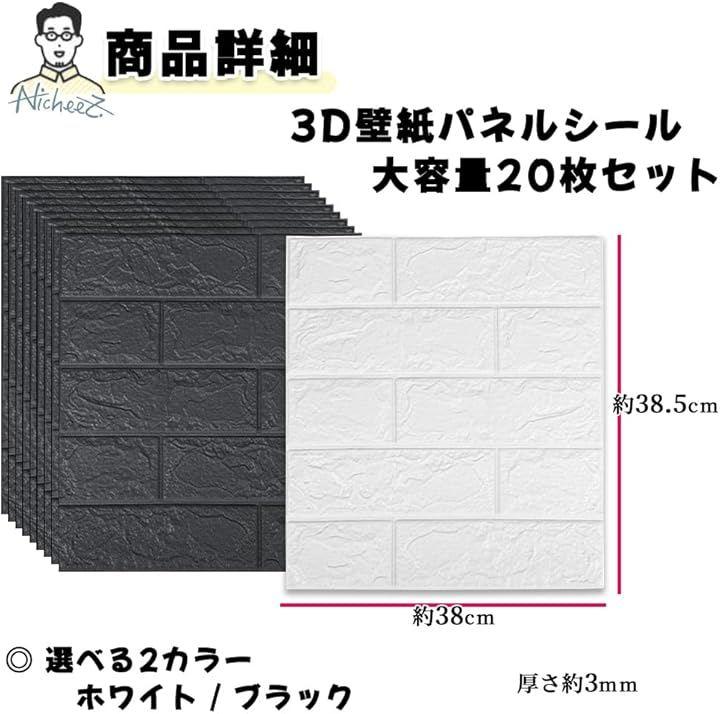 「商品内容」3Dパネルシール(レンガ調) カラー:ホワイト/ブラック サイズ:38cmx38.5cm 厚さ/約3mm