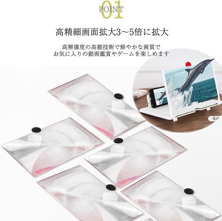 ・スマートフォンなどの携帯電話の画面を拡大し、3D画像のように楽しむための、トップフルネスレンズを搭載した、携帯電話ドッグ。