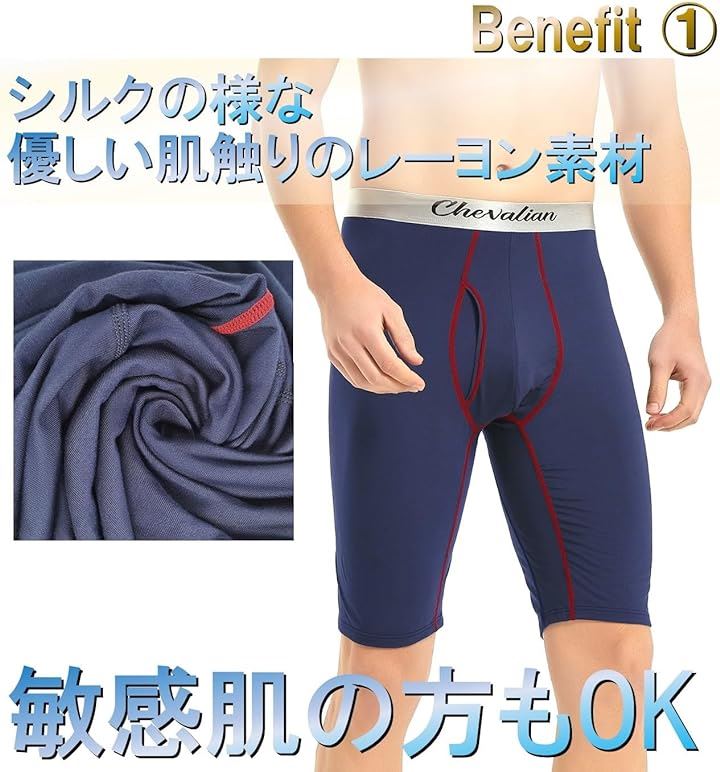 肌に触れる質感、締め付け感を感じさせないフィット感にこだわった、ひざ上丈ロングボクサー前開きタイプです。