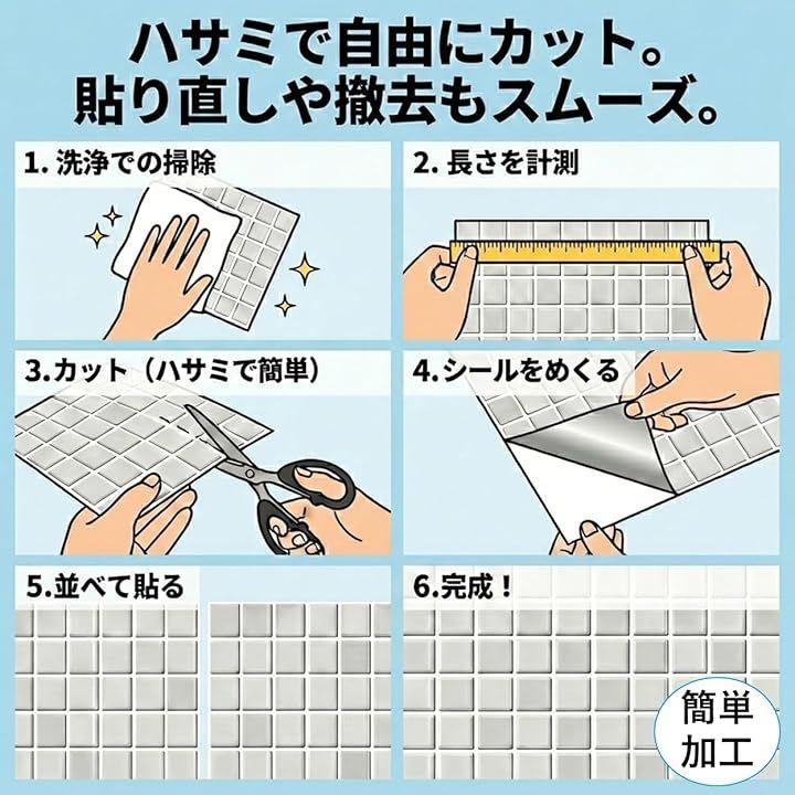 「初心者でも簡単DIY」 強力な自粘着タイプで、裏紙を剥がして貼るだけ。