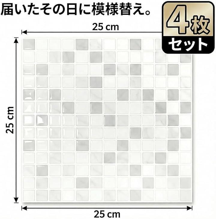 4枚セットでお届けする「YJC0240」は、清潔感のある色合いで、キッチンや洗面所をパッと明るい印象に変身させます。