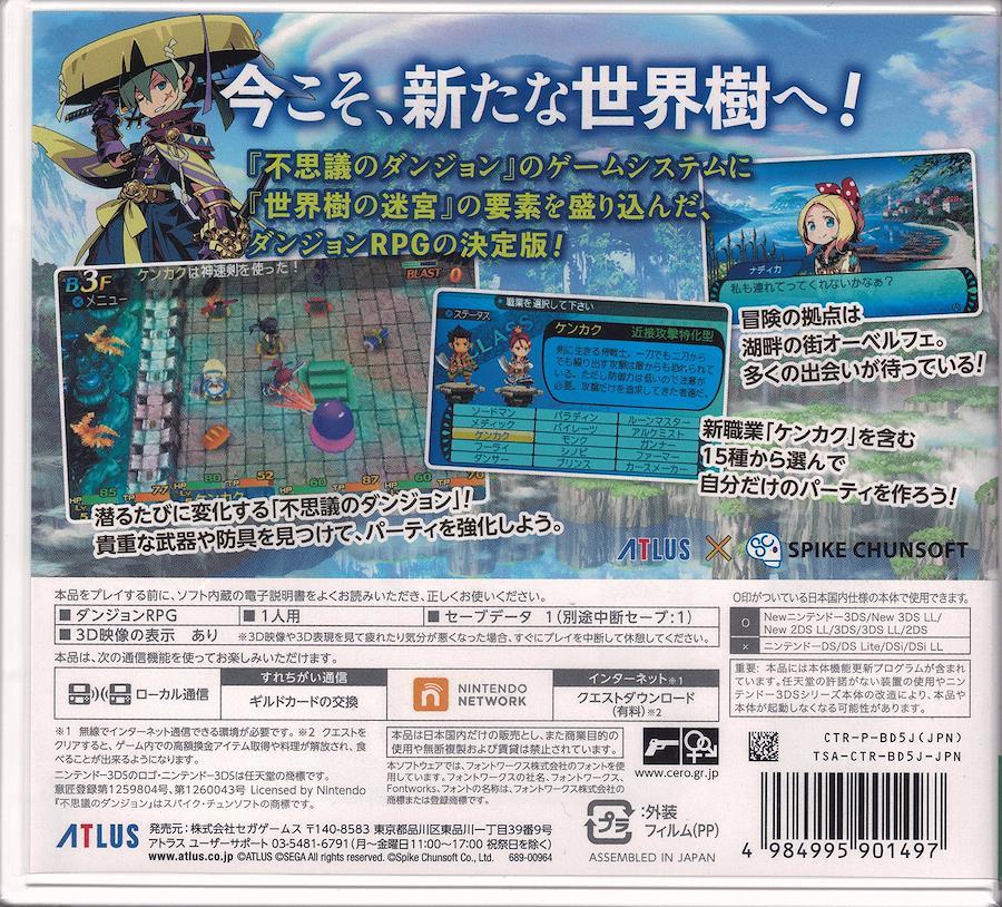 初回生産限定新しい不思議のダンジョン、始まる!『世界樹と不思議のダンジョン』とは、不思議のダンジョン」のゲームシステムに「世界樹の迷宮」の世界観ならではの要素を盛り込んだ新しいダンジョンRPGです! 本作『世界樹と不思議のダンジョン2』は、前作で高い評価を得たシステムを更に磨きあげ、本作の魅力であるキャラクターメイキングも新たな職業「剣客」などを含んだ男女合計15種に増加しパワーアップ! より遊びやすく、より楽しく、より奥深く進化したシリーズ最新作。ニンテンドー3DS用ダンジョンRPGの決定版といえる作品です。