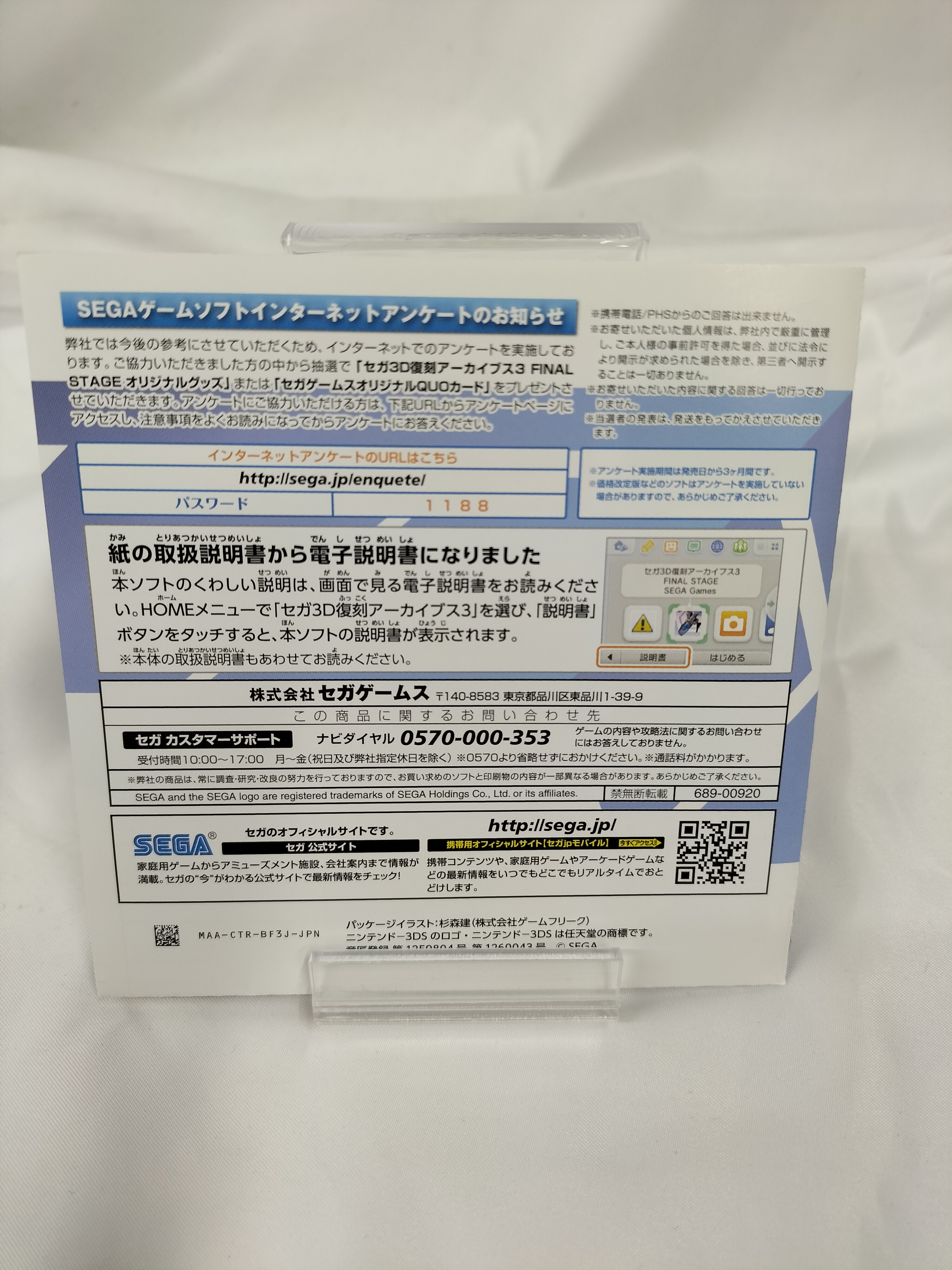 3DSソフト セガ3D復刻アーカイブス3 FINALSTAGE SEGA 3DSソフト SEGAセガ3D復刻アーカイブス3 FINALSTAGE3DSソフト