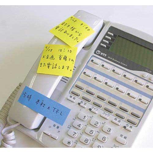 つきにくかった樹脂面にもしっかり貼れて、きれいにはがせる強粘着タイプのポストイット。詳しい伝言、情報整理などに便利なサイズ。見落とし防止に役立つネオンカラー。