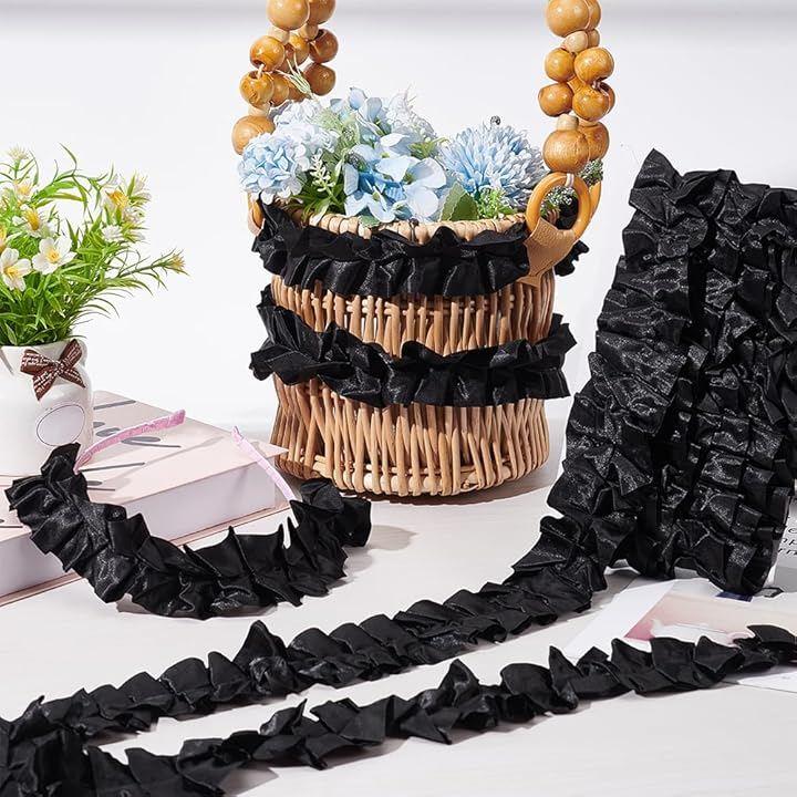 高品質素材:フリルフリルレース装飾リボンは高品質のサテン素材で作られています。