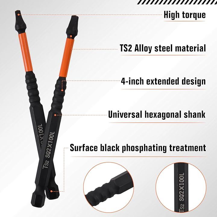 「高トルク」これらの角型ビットは高トルク用途向けに設計され、過酷な作業環境でも最大出力と耐久性を発揮。