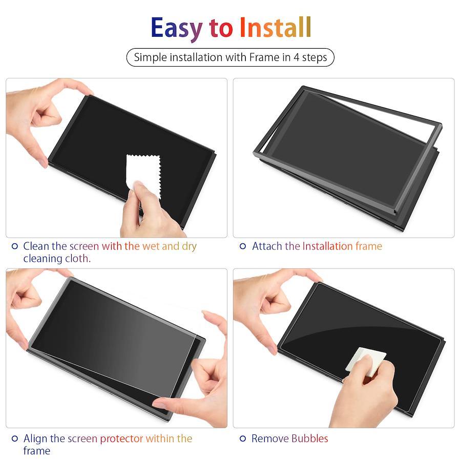 [Switch OLED Model 2021] Glass film dedicated to Switch OLED (7 inch) Note: This model does not support switch (6.2") and switch lite (5.5") (Installation Tools Included) Switch OLED protective film comes with a dedicated guide frame, making it easy for anyone to install. 4 x Glass Film for Switch Organic EL Model (7") 4 x Alcohol Sheets 1 x Dry Sheet 1 x Dust Removal Film Alcohol sheet, dry sheet and dust remover are included, and cut for easier application Anti-Bubble and Anti-Fingerprints: The automatic suction design allows you to easily attach the switch organic film even if you don't like it. Not only is it gentle on the eyes, but it also prevents sebum and fingerprints from sticking to water and oil-repellent cords. Brightly colored and more fun than ever before (3D Glass/High Transmittance) The Switch OLED glass film has a full-round design that can protect the screen from corners and corners. 0.33mm thickness gives the touch screen sensitivity, and smooth finger slide make your game more than ever before. Adopts high-quality material that uses 99.9% high transmittance, so it has high transparency that does not change the color of the original screen, so you can enjoy games without compromising the image quality 9H Hardness / Shatterproof / Scratch-Resistant: Switch organic film is made from Japanese Asahi Glass material, and has been processed to prevent fragments from scattering when the LCD protective glass film breaks. In addition, it has a 9H hardness that prevents scratches on cutters and other knives, so it prevents damage caused by cracking the LCD screen. Keep your screen clean and make your game more beautiful