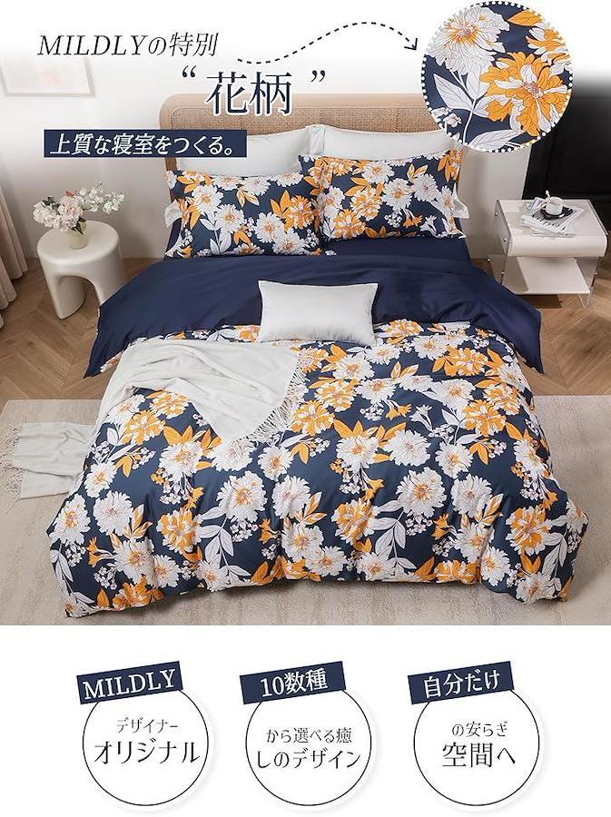 「デザイン性で変わる寝室空間」 MILDLYデザイナーチーム開発のオリジナル花柄が、寝室をベッドカバー おしゃれな空間に進化させます。