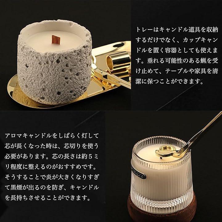 芯切り(ウィックトリマー)、火消し(スナッファー)、芯押さえ(ウィックディッパー)、専用トレーが揃っており、日常のキャンドルケアに最適。
