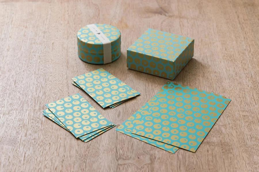 商品詳細: ・ポチ袋6枚(60×98mm) ・ハガキ3枚(100×150mm) ・小箱1個(85×85×37mm) ・ミニ茶缶1缶 素材 美濃和紙・シルク印刷 |