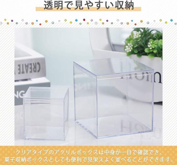 「透明で見やすい収納」 クリアタイプのアクリルボックスは中身が一目で確認でき、菓子収納ボックスとしても便利で見栄えよく並べることができます。