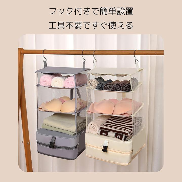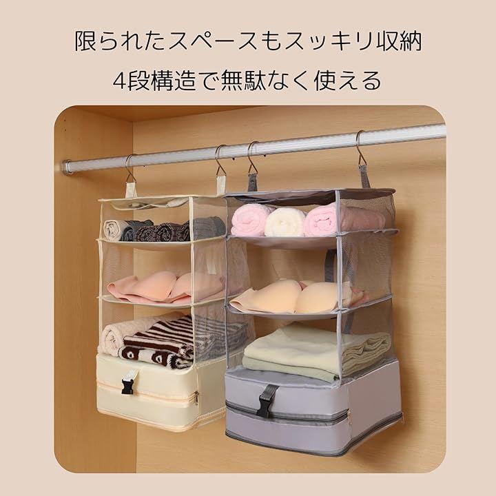 4段の収納スペースにより、衣類や小物を効率的に整理整頓でき、クローゼットの中がすっきりと片付きます。