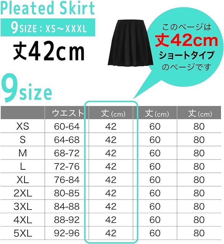 ・「ひざ丈 42cm制服スカート」 昭和レトロを感じる女子高生制服スカート ウエスト周りをすっきりさせ、程よく裾が広がるデザインできれいなシルエットのプリーツスカート スクールスカート、セーラー服用スカートとしてもおすすめです