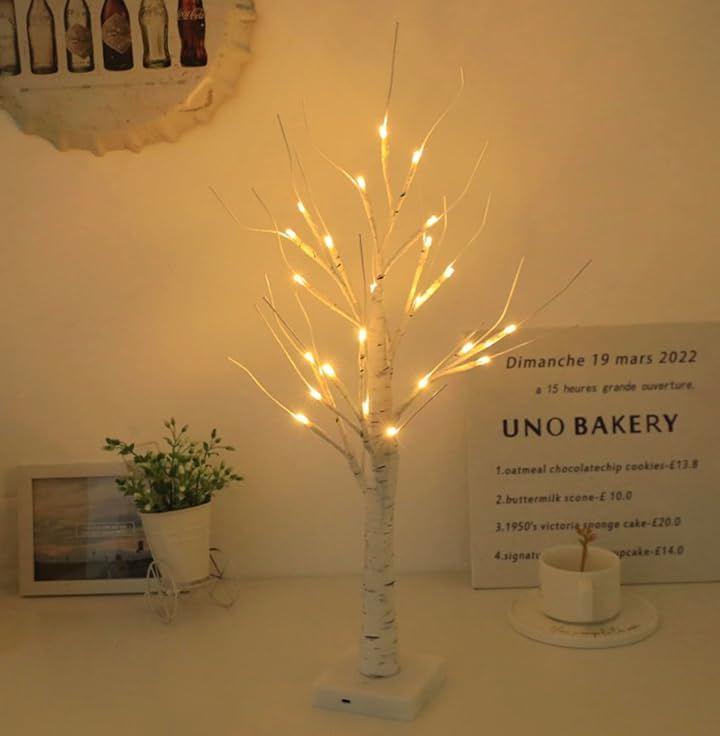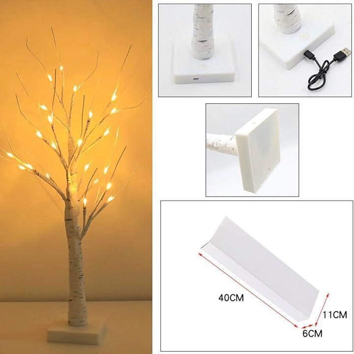 電源方式:USB給電または単三電池3本(別売り)対応 サイズ:高さ約55cm、台座10x10cm 光色:暖色LEDライト24個搭載(柔らかい光) 素材:プラスチック・金属ワイヤー(フレキシブル枝) 用途:ベッドルーム、リビング、玄関、店舗、バー、パーティーなどの装飾に