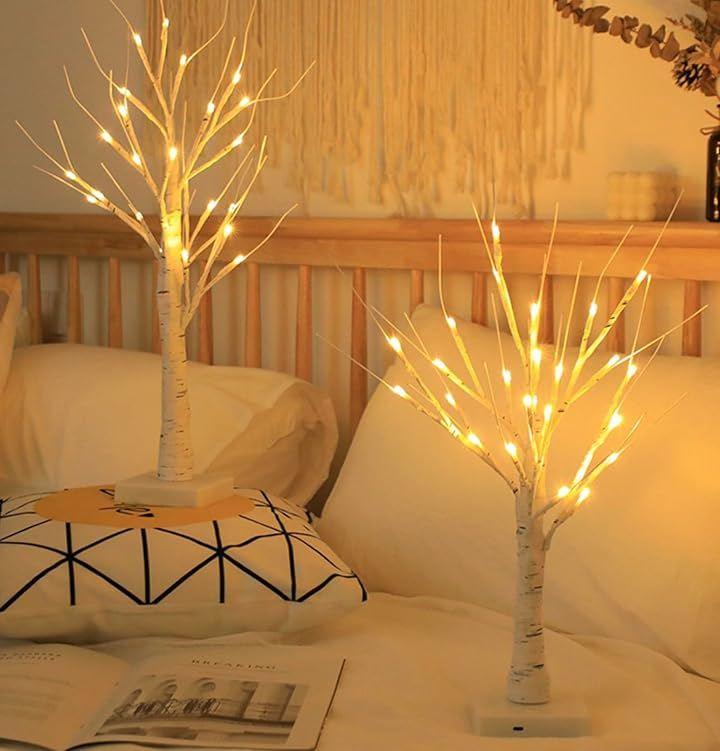 自然の風合いを再現したリアルな白樺風デザインに、24個の暖色LEDライトが美しく点灯。