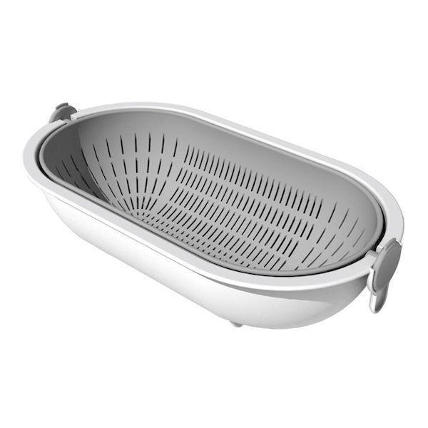 ボウルを傾けるだけでザルが回転して水切りがラクにできます。