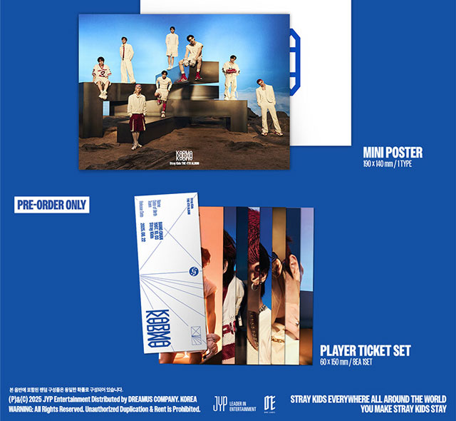 <商品案内>※韓国チャート(ハント[HANTEO]チャート・サークル[CIRCLE]チャート)と、日本オリコンチャートに反映グローバル トップアーティスト Stray Kidsが、8月22日に新しいフルアルバム「KARMA」をリリース!来る8月、あなたの心を揺さぶるアルバム!日常に痺れるようなアドレナリンを届けるStray Kidsの4th Full Album!
