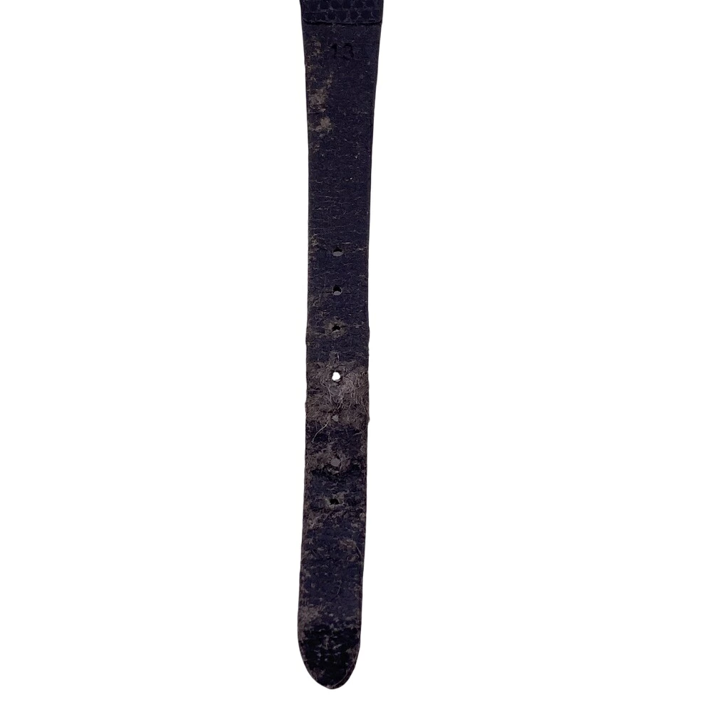 サイズ | ケース:約2.2cm x 2.1cm 腕周り:約14-17cm バンド幅:約0.9~1.4cm ムーブメント:クオーツ式 文字盤カラー:ブラック 現在電池切れのため動作しておりませんので電池交換後にご使用ください。 ※多少の誤差があると思いますが予めご承知の上ご購入をお願い致します。 |