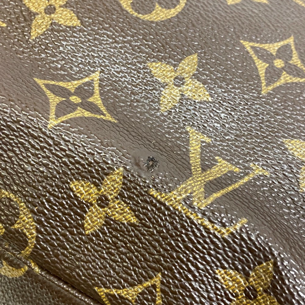 状態 | 外・表面:小キズ、スレ、薄汚れ外・ハンドル-ストラップ:小キズ、スレ、薄汚れ 外・コーナー:小キズ、スレ、薄汚れ、コバ剥がれ 外・形状:やや型崩れ 内側:小キズ , スレ , 汚れ , 黒ずみ , シミ ファスナー部分:スレ、キズ、くすみ、黒ずみ におい:保管臭 金具部分:スレ、キズ、剥げ、汚れ、くすみ ファスナー破損 |