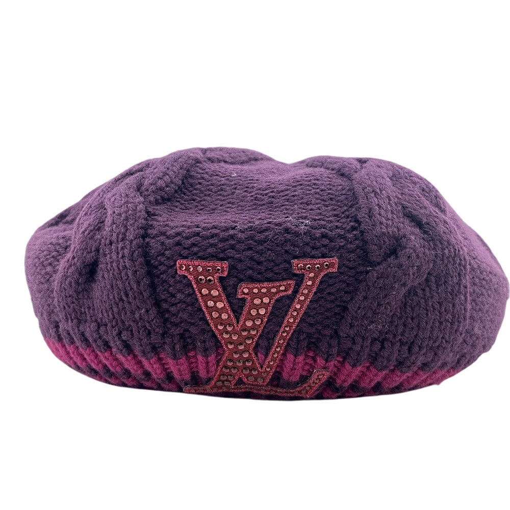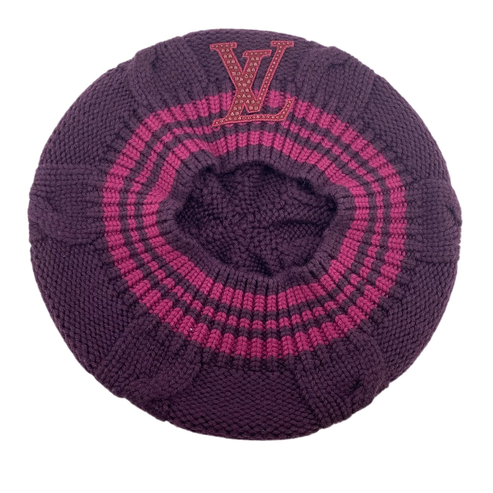 商品名 | LOUIS VUITTON/ルイヴィトン M72705 ベレ コロンビア ケーブルニット 帽子 LVロゴ ベレー帽 パープル レディース |