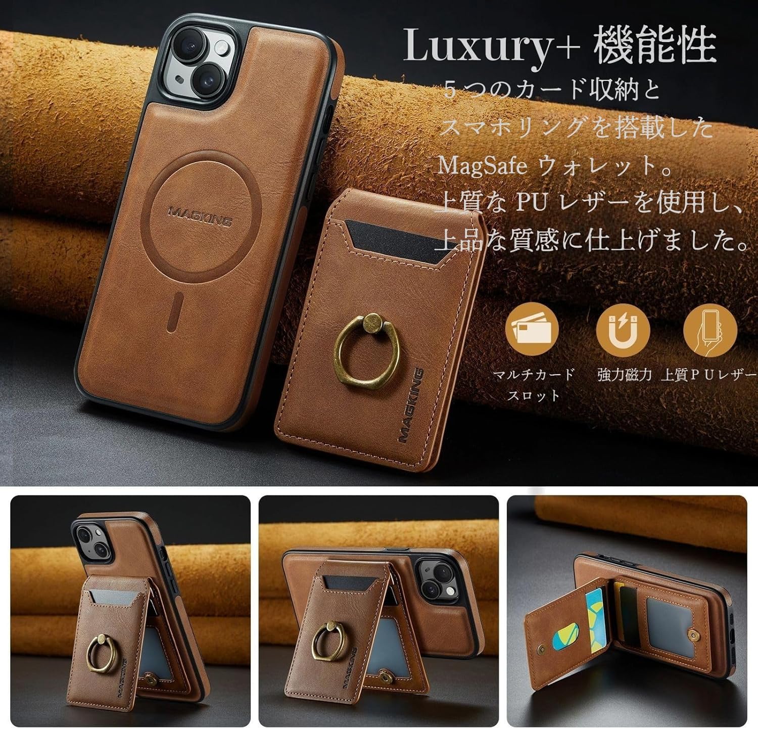 【2in1 Magsafeウォレット】 | Magsafe磁石によってくっつく『スマホケース』と『ウォレット』のセットです。 ラグジュアリーな質感と多彩な機能性の融合。 もちろん『スマホケース』と『ウォレット』は用途に応じて別々の使用することもできます。 |