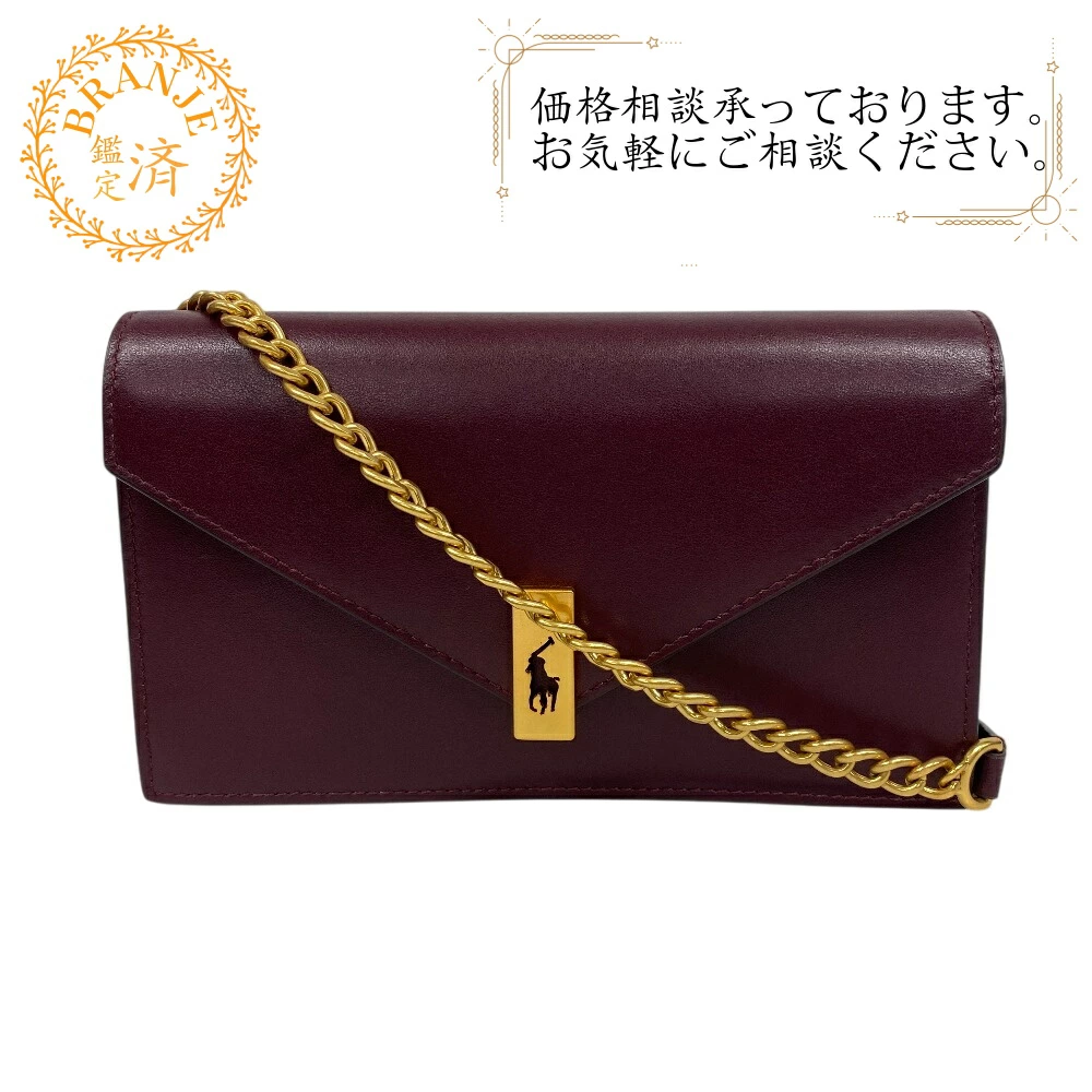 商品名 | POLO RALPH LAUREN/ポロラルフローレン Polo ID チェーンウォレット ショルダーバッグ ワインレッド レディース |
