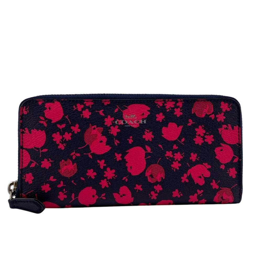 商品名 | COACH/コーチ F56733 プレーリー キャリコ フローラル ラウンドファスナー スリムアコーディオン 長財布 ネイビー レディース |