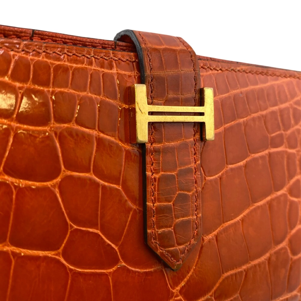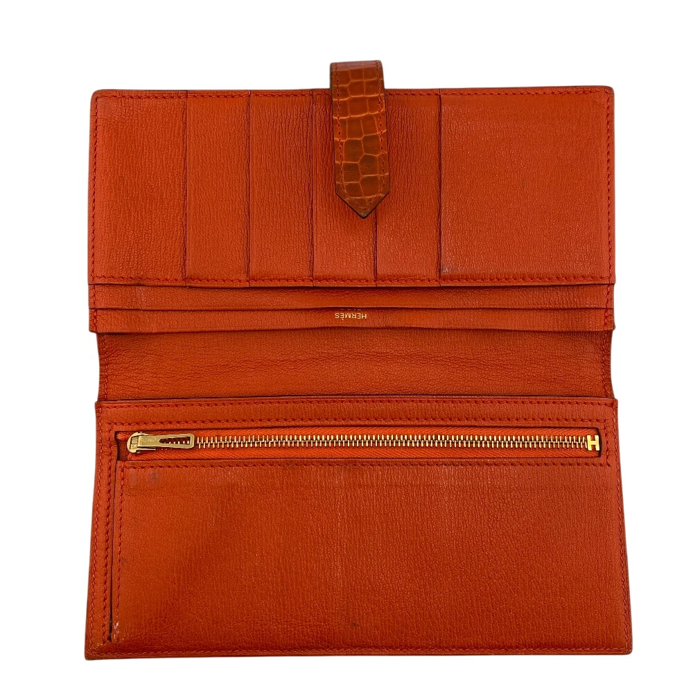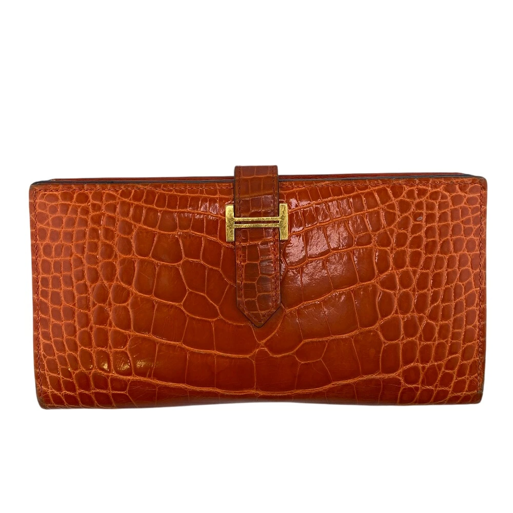 商品名 | HERMES/エルメス ベアンスフレ アリゲーター 長財布 オレンジ レディース |