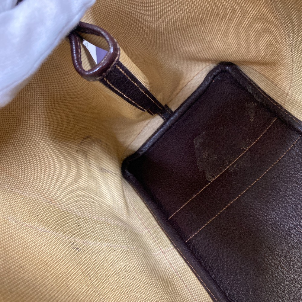 状態 | 【外・表面】スレ、ヨレ、ヤケ、キズ、汚れ、シワ、黒ずみ、変色 【外・ハンドル-ストラップ】スレ、キズ、コバ割れ、コバ剥がれ 【外・コーナー】スレ、キズ、汚れ、剥げ、コバ割れ、黒ずみ、変色、コバ剥がれ 【外・形状】やや型崩れ 【内側】スレ , キズ , 汚れ , 黒ずみ , 変色 【におい】なし 【金具部分】スレ、キズ、剥げ、変色、緑青 両サイド擦れによる痕、汚れ |