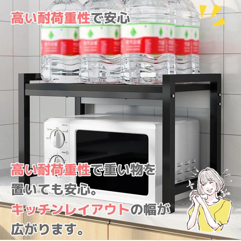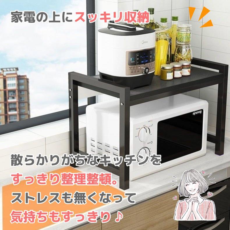 電子レンジ、炊飯器、オーブン、コーヒーメーカー等、様々な家電の上に設置し、ちょっとした作業スペースとして使え、キッチンスペースをより広々とお使いいただけます。 これ一つで家事効率を大幅にUPできます。