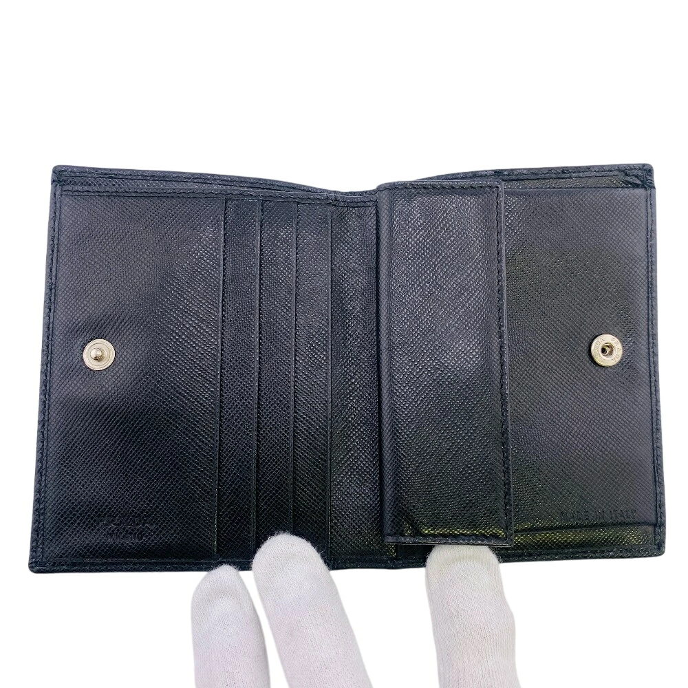 商品名 | PRADA/プラダ サフィアーノ 三角プレート 二つ折り財布 ブラック ユニセックス |