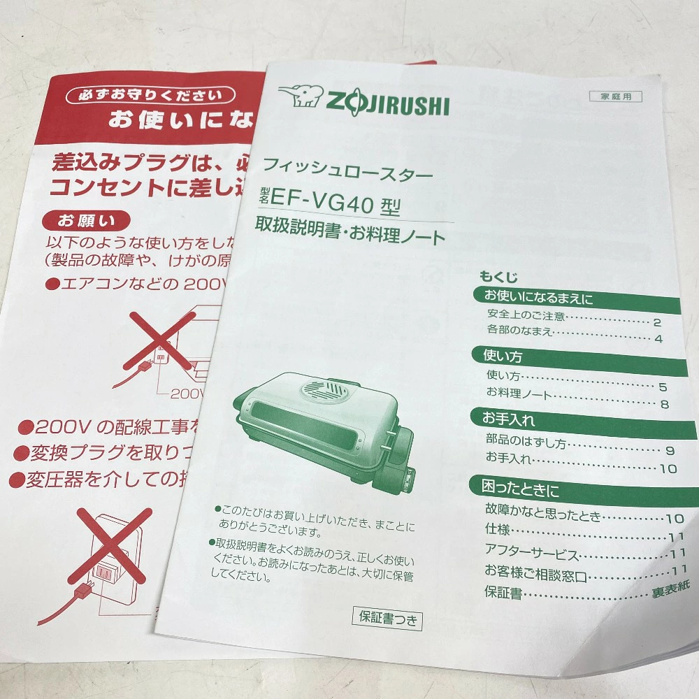 商品名 ZOJIRUSHI/象印 EF-VG40 フィッシュロースター 両面焼き