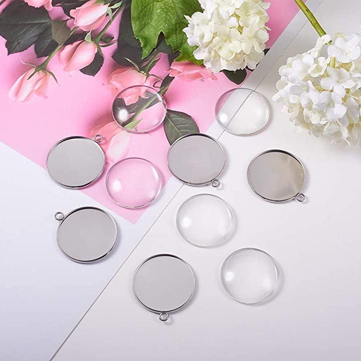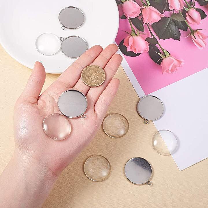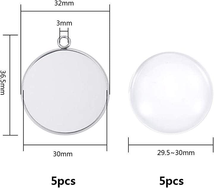 ・✿仕様&サイズ✿:セッティング:32x36.5x2mm、トレイ:30mm;穴径:3mm;ガラスカボション:30x7mm;入り数:各5個;合計5セット;色:ステンレススチール色&クリア;材質:304ステンレス+ガラス
