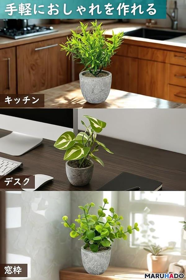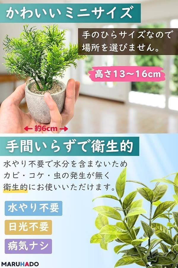 「お手入れ不要でいつも美しい」フェイクグリーンのミニ観葉植物セットは、水やり・日光・肥料が不要で枯れる心配がありません。
