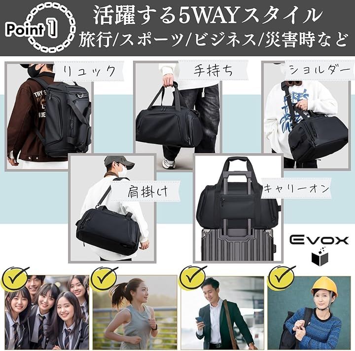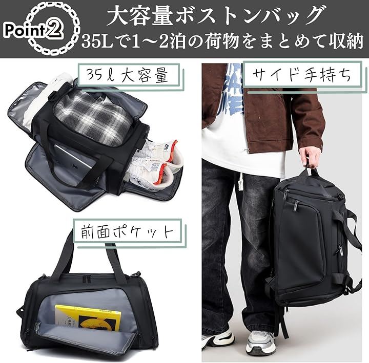 リュックになるボストンバッグとしても人気があり、旅行、出張、修学旅行など幅広く活躍。