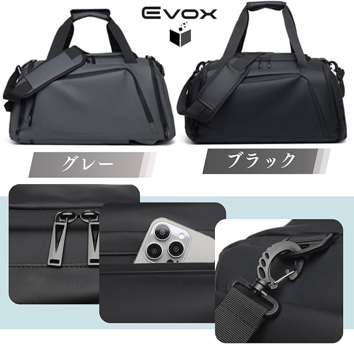 「本体サイズ/商品詳細」*本体サイズ:本体幅50cm、奥行(マチ)25cm、高さ25cm *重量:730g *素材:高密度防水生地 *カラー:ブラック、グレー *仕様:手持ち・肩掛け・ショルダー・リュック・キャリーオン対応の5WAY仕様 *用途:1泊、2泊、2泊3日の旅行、スポーツ、出張、修学旅行など幅広く使用可能なダッフルバッグです。